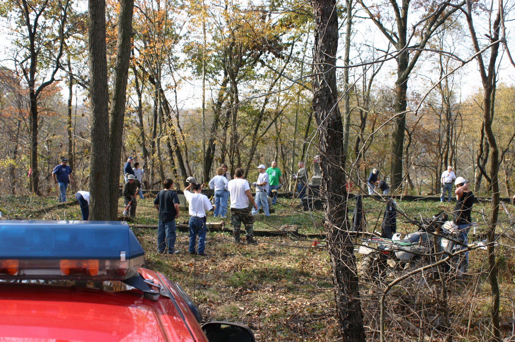 On Saturday, June 20, 2009 the Conway Family Cemetery Preservation Committee organized the 2nd Cemetery work crew. The morning was spent working through a few rain showers to clear additional trees and ground vegetation growth that had regrown since the November 2008 initial effort. Once again, the Committee would like to extend special appreciation to Conway Fire Chief Bobby Charlovich for organizing a group of Conway Volunteer Fire Department members who provided significant assistance, as well as the following individuals who gave their time to help preserve this community asset: